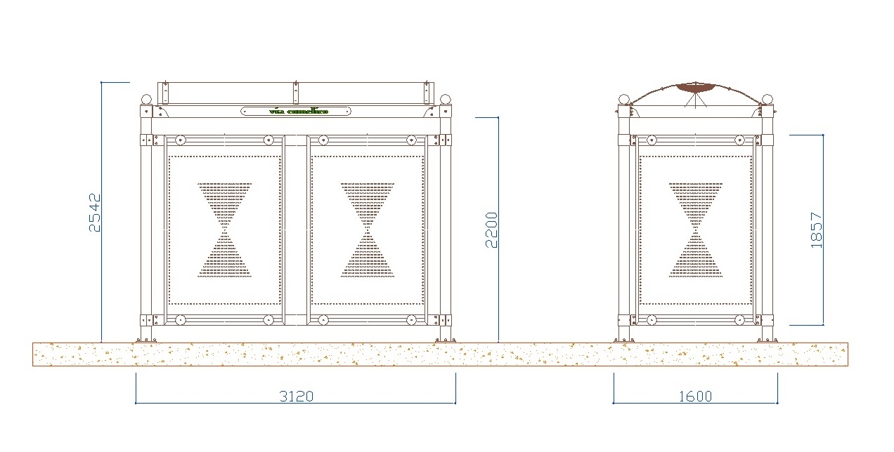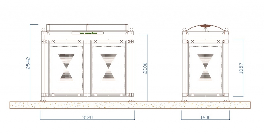 Pensilina, richiama le forme classiche con soluzioni di pregio ma funzionali garantendo eleganza e robustezza. Panchetta interna.