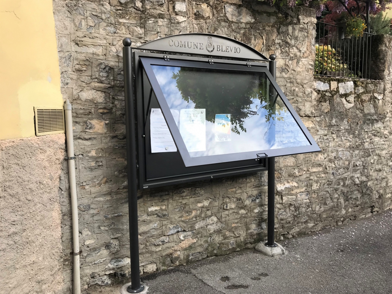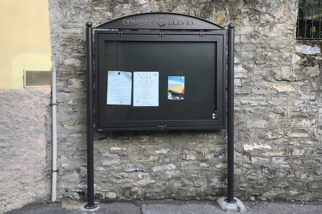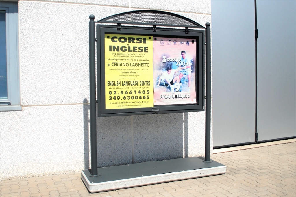 Bacheca nelle versione a uno sportello o a due sportelli per le soluzioni a terra , a parete e mobile come da disegno.