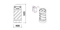 Basamento di forma ottagonale, in conglomerato cementizio bocciardato predisposto per l’ancoraggio al suolo.