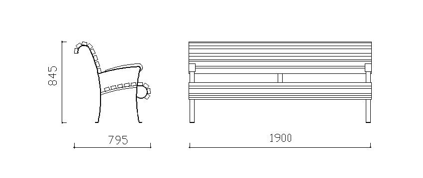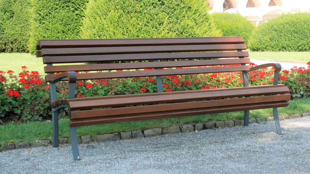 Panchina a quattro posti, di stile tradizionale.